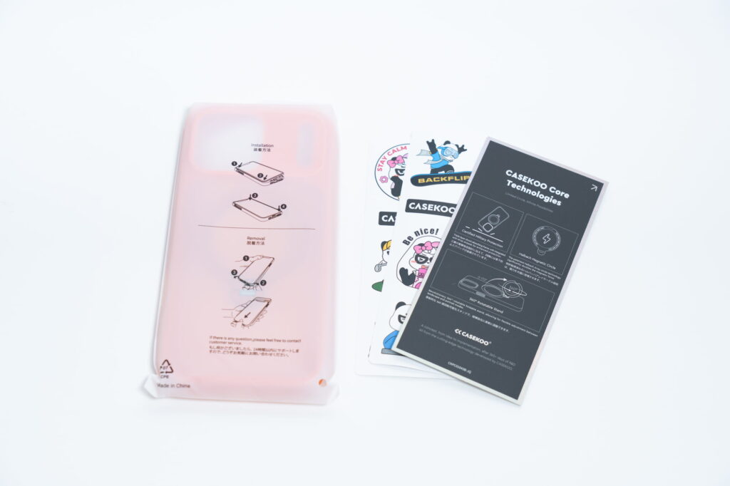 CASEKOOのこのケースは、クリアバージョンでは黄ばみにくいクリア素材を採用しつつ、耐衝撃性もしっかり確保されたバランスの良いモデル。背面にはスタンドを内蔵しており、動画視聴やビデオ通話など、日常のちょっとしたシーンでも使いやすい設計になっています。また、このスタンドはMagSafeにも対応しているため、MagSafe充電器や磁力のあるスタンドやアクセサリと組み合わせて使えるのも特徴。早速見ていきましょう。